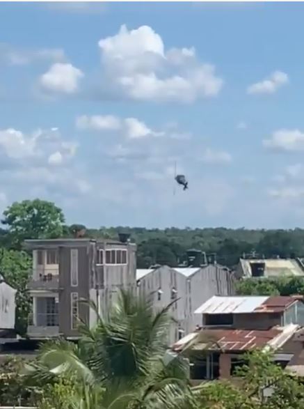 Un video poner en línea muestra el aterrador momento en que se puede ver un helicóptero del Ejército Nacional de Colombia perdiendo el control y estrellándose contra el suelo con una columna de humo.