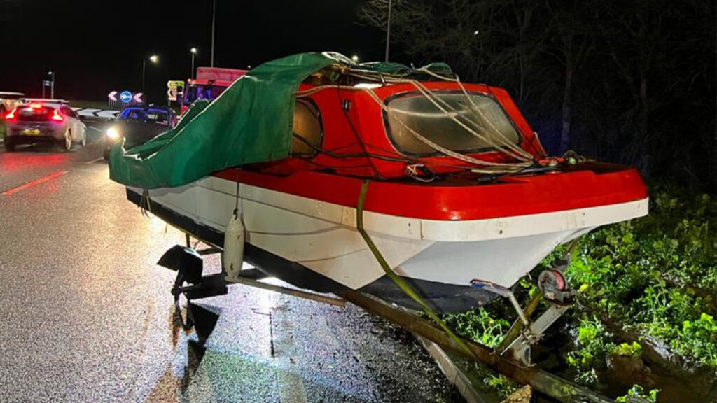Automovilistas atónitos cuando un bote de 16 pies es abandonado en la carretera principal - 80 millas mar adentro