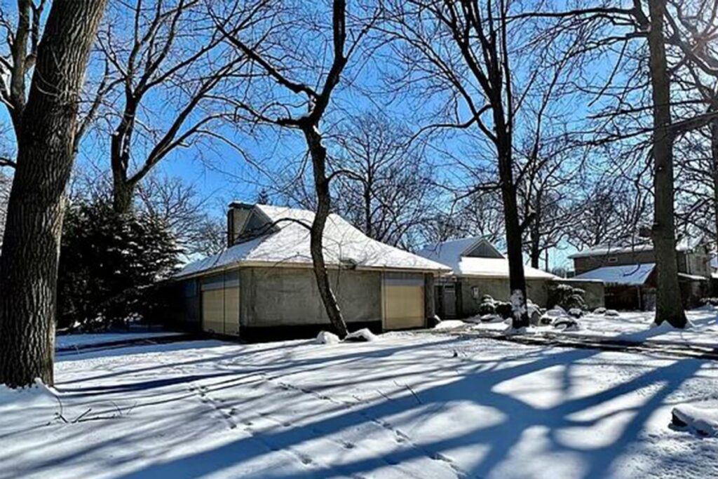El agente de bienes raíces Zillow lo describe como una "obra maestra moderna de mediados de siglo", ubicado en medio acre de bosque.