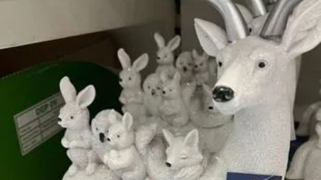 La mujer había visto una estatua en miniatura de un reno macho con un grupo de adorables animales sentados sobre ella.