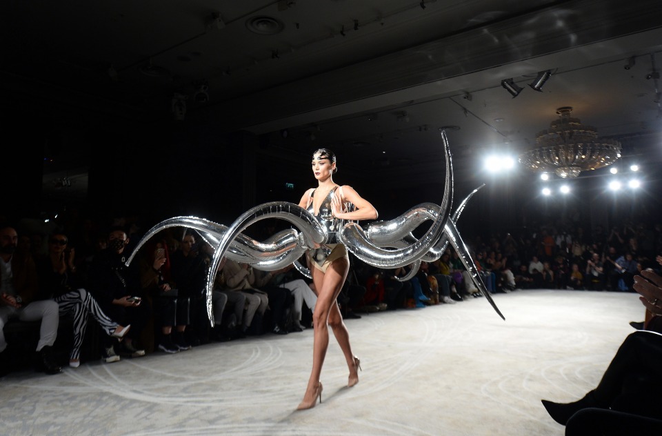Las modelos desfilaron por la pasarela con disfraces que no se verían fuera de lugar en la película de ciencia ficción La guerra de los mundos.[/caption]