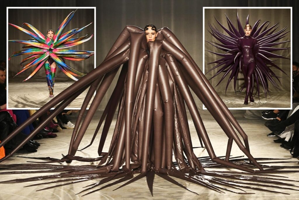 LAS MODELOS se arrastran por la pasarela con disfraces que no estarían fuera de lugar en la película de ciencia ficción La guerra de los mundos.