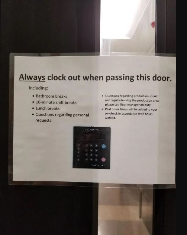 Se advirtió al personal que siempre fichara antes de pasar por la puerta, con una extraña lista de condiciones.