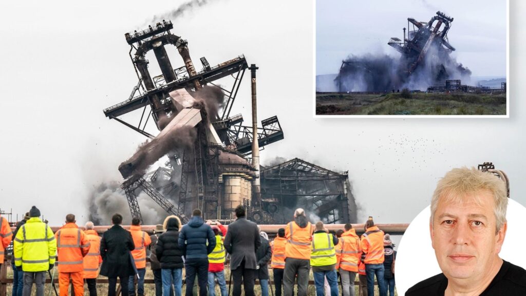 ELLOS demolieron el alto horno gigante en Redcar hoy y se podía escuchar la explosión a 20 millas de distancia.