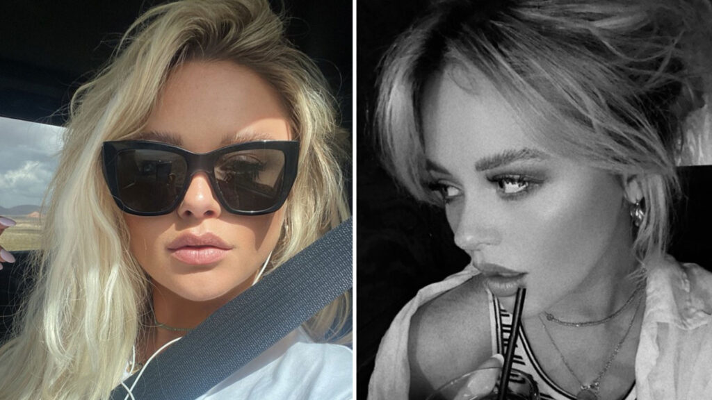 Una de las fotos también muestra a la estrella de The Inbetweeners haciendo pucheros a la cámara, con gafas de sol y su cabello rubio peinado sobre un hombro.