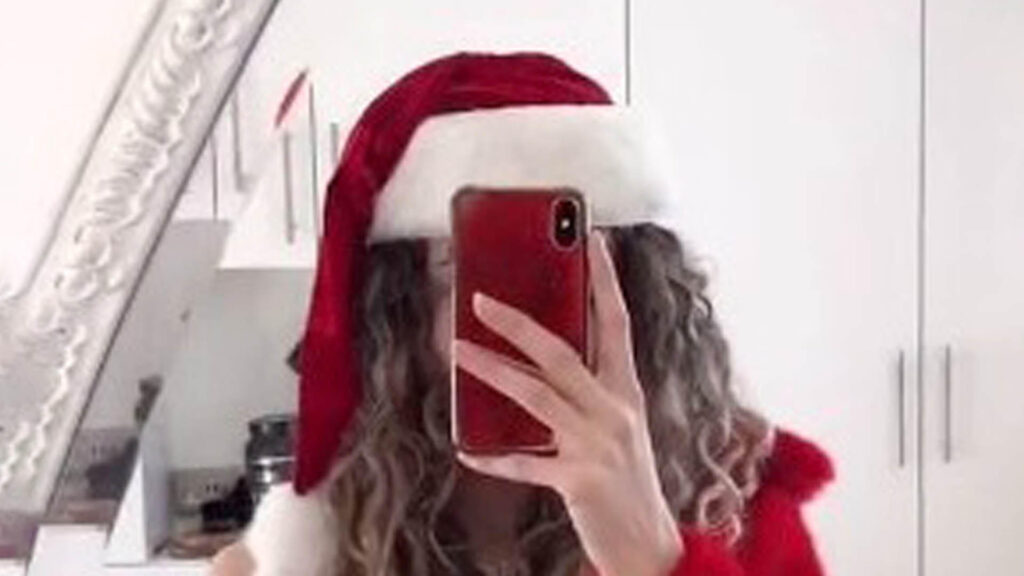 Esta vez lleva un gorro de Papá Noel y un vestido de terciopelo rojo.