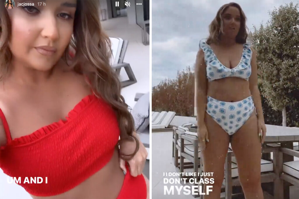 JACQUELINE Jossa se quedó atónita mientras modelaba su nueva gama de coloridos bikinis durante las vacaciones.