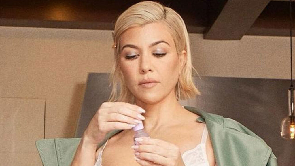 Kourtney Kardashian muestra sus tetas y vientre reales en lencería de seda sexy con cabello platinado en nuevas fotos calientes