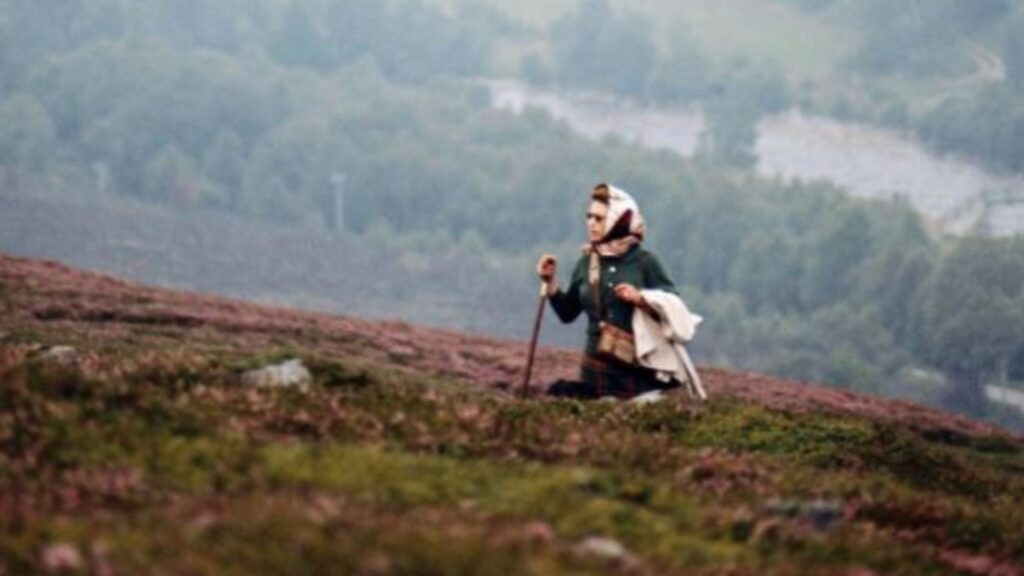 La imagen muestra a Su Majestad caminando en 1971 en Balmoral, Escocia, que es ampliamente considerado como su lugar favorito.