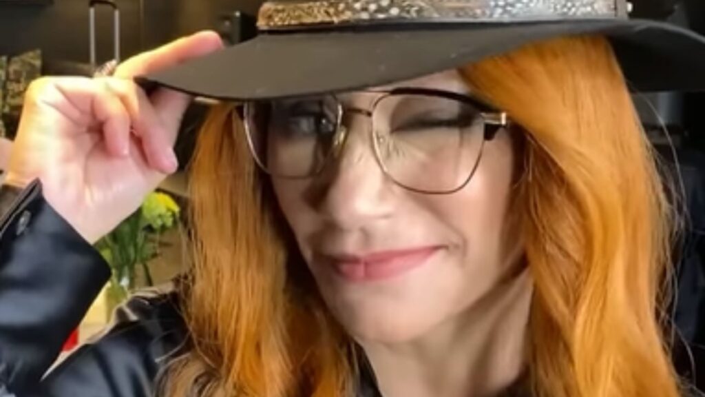 Con anteojos y con su característico cabello rojo a la vista, inclinó un sombrero de ala ancha hacia los seguidores y les guiñó un ojo.