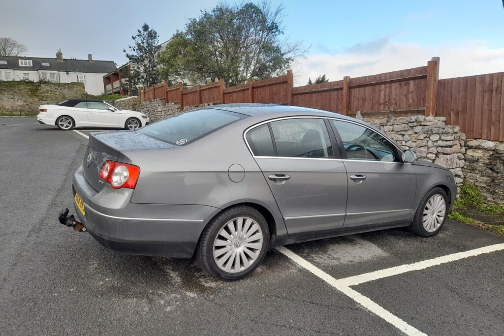Los automovilistas ofendidos han bromeado diciendo que solo tendrá que pagar la mitad del precio de un boleto, ya que las divertidas instantáneas muestran un automóvil atascado con las ruedas traseras y el baúl colgando sobre la línea.