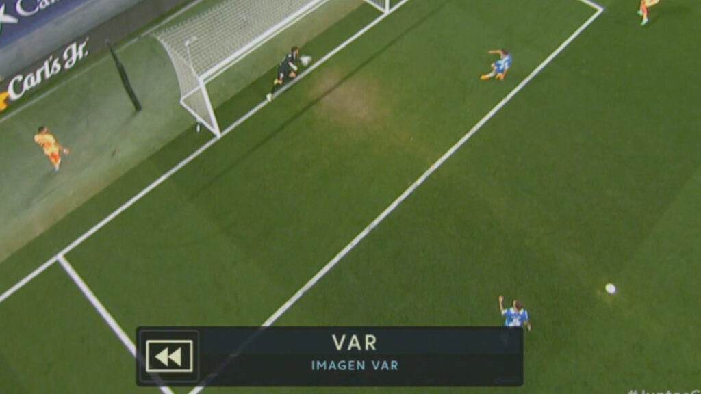 Pacheco parecía haber cruzado, antes de que se iniciara una verificación de VAR para determinar si el balón había cruzado la línea.