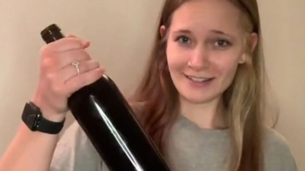 Primero sacó una botella de vino, luego una botella de agua de 32 onzas.