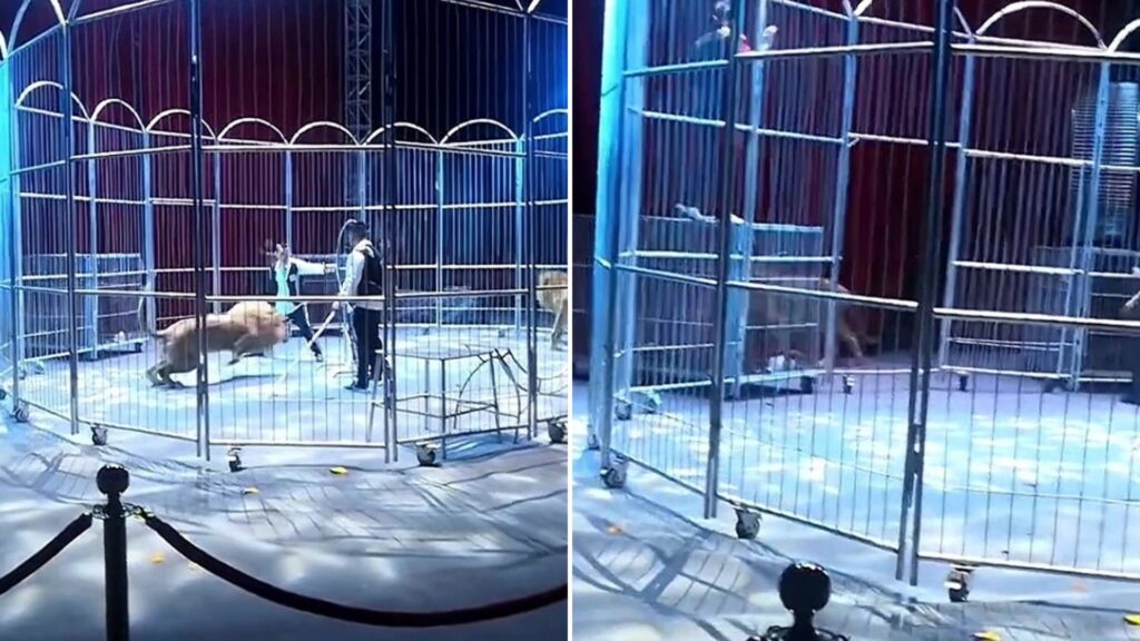 Momento de terror: 2 leones escaparon de la jaula durante una actuación de circo, lo que provocó que la multitud huyera después de que las imágenes mostraran bestias en la calle.