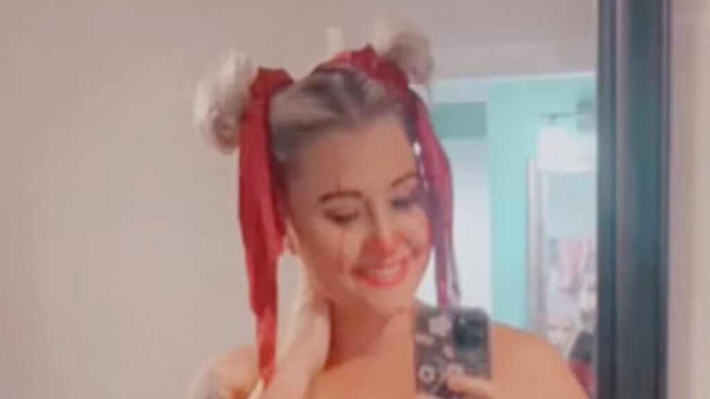 En su video de TikTok, Caitlyn usó un disfraz rojo y blanco que presentaba un tutú, medias de rejilla rojas y botas blancas.