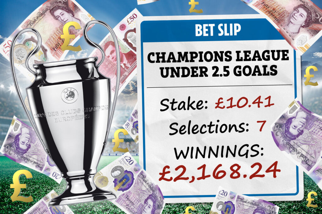 Comenzando con las selecciones en el juego del empate del Manchester City en Copenhague y la Juventus en Haifa, el apostador eligió cinco juegos más a las 8 p.m. para terminar con menos de 2.5 goles, dos goles o menos, y combinó en un excepcional acca.