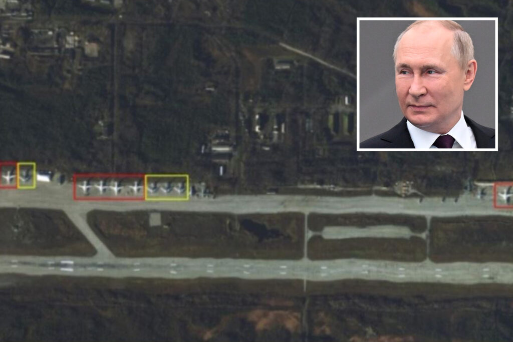 Una imagen de satélite tomada el 7 de octubre muestra siete bombarderos estratégicos Tu-160 y cuatro aviones Tu-95 en la base aérea rusa de Olenya en la península de Kolsky, informó Faktisk.