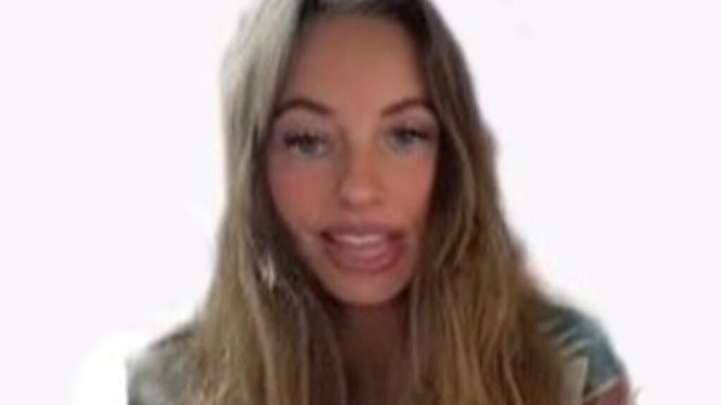 El video muestra a Ashley hablando a la cámara mientras muestra el enlace de Amazon del moldeador de cuerpo.