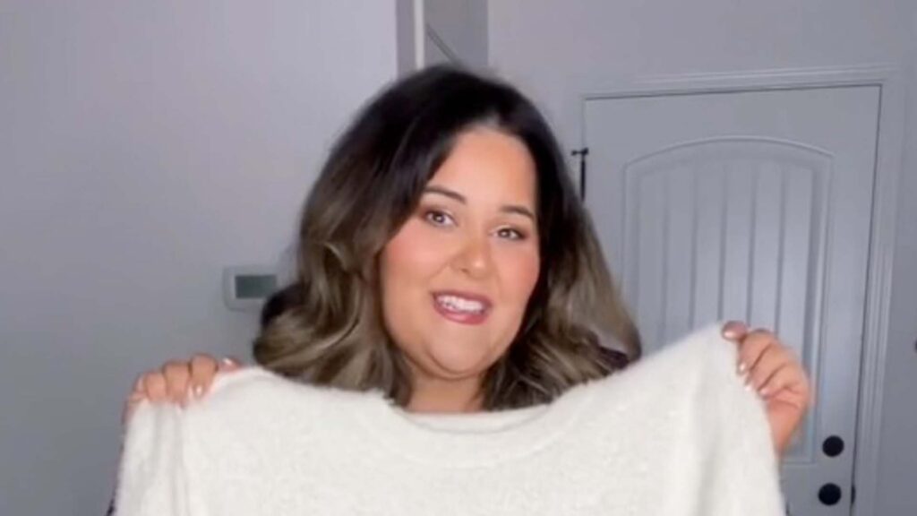 Al detallar su proceso de glamour, Leah primero comenzó agarrando un vestido suéter color crema "realmente hermoso" de Amazon.