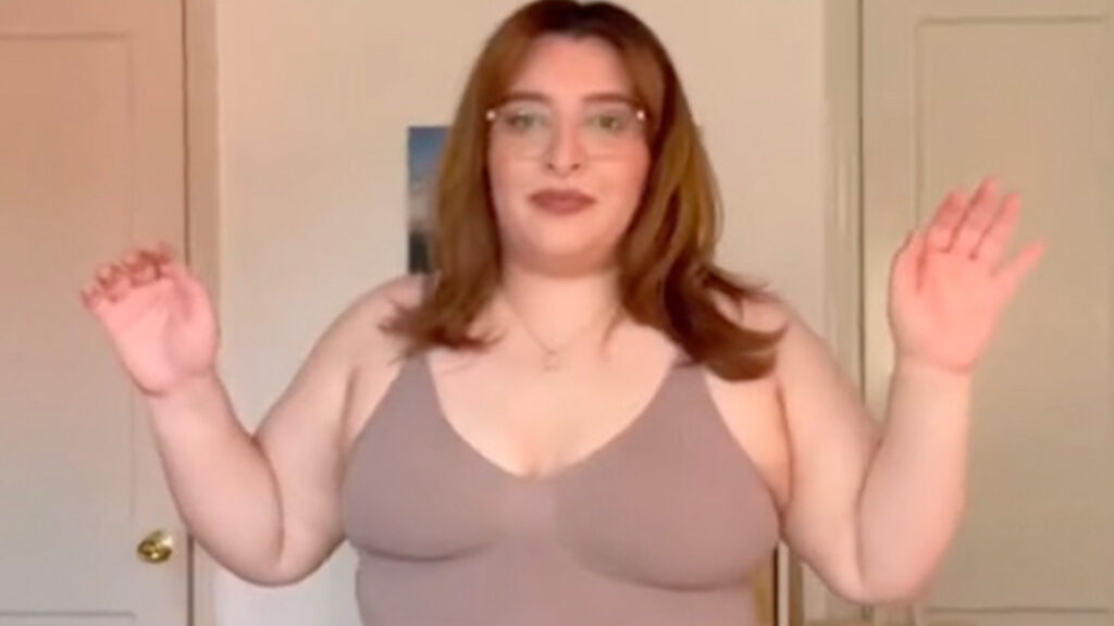 TikToker Cinphotos, que dijo tener 16 años, filmó un desfile de modas de la marca de fajas de Kim Kardashian para ver cómo funcionan las piezas en un cuerpo de talla grande.