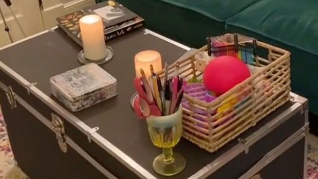 Juliette también tiene un cuaderno de bocetos grupal y un portalápices en su mesa de café para sus amigos artistas.