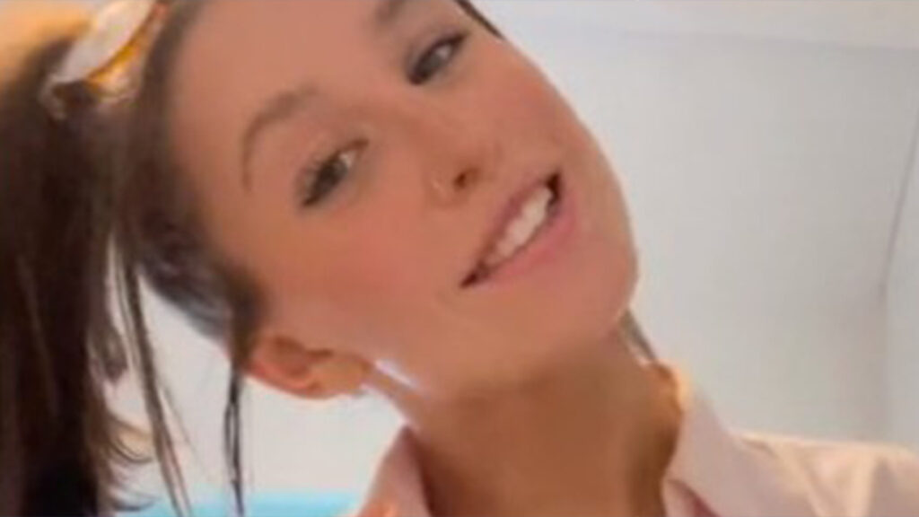Cuando comenzó el video, la creadora de contenido estaba de pie en una habitación con el cabello recogido en una cola de caballo hacia atrás.